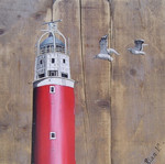 Noordwijkse vuurtoren met meeuwen maat 60 x 60