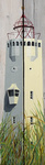2009Texelse vuurtoren geschilderd op verweerde steigerdelen. Afgelakt zodat het schilderij ook buiten kan hangen.